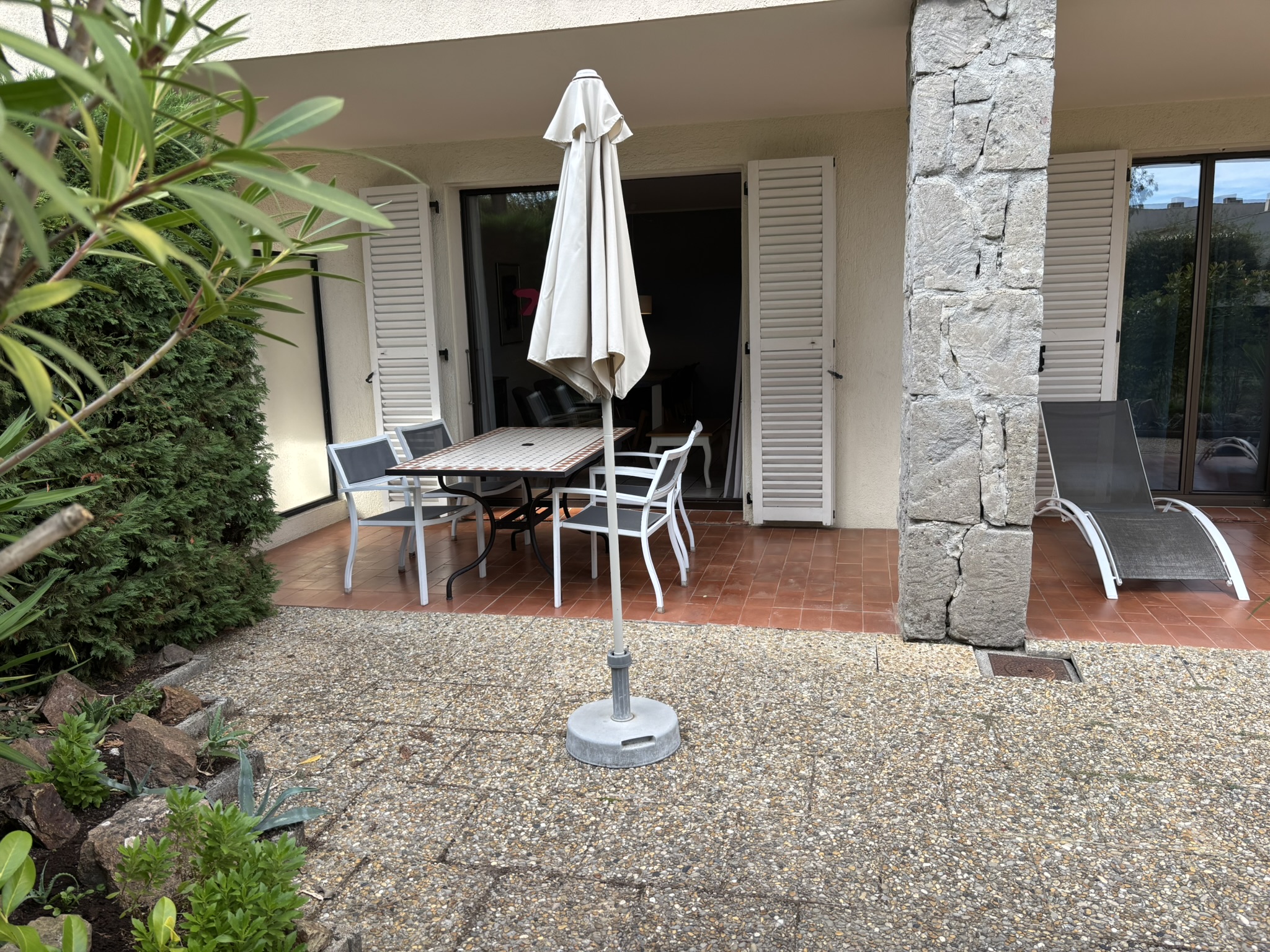 Skøn sydvendt 3 værelses lejlighed beliggende i stueplan med stor overdækket terrasse og have. 2 separate indgange.